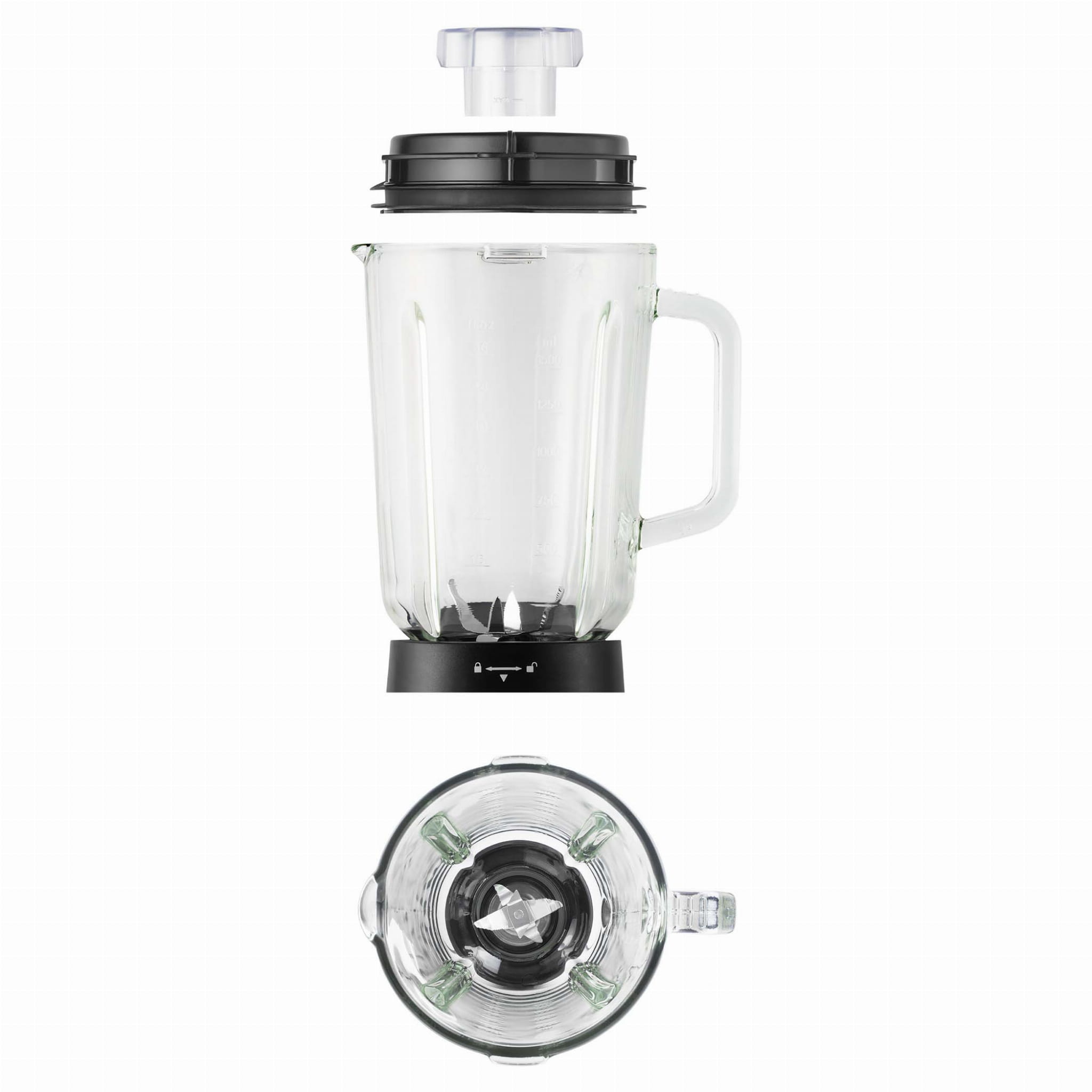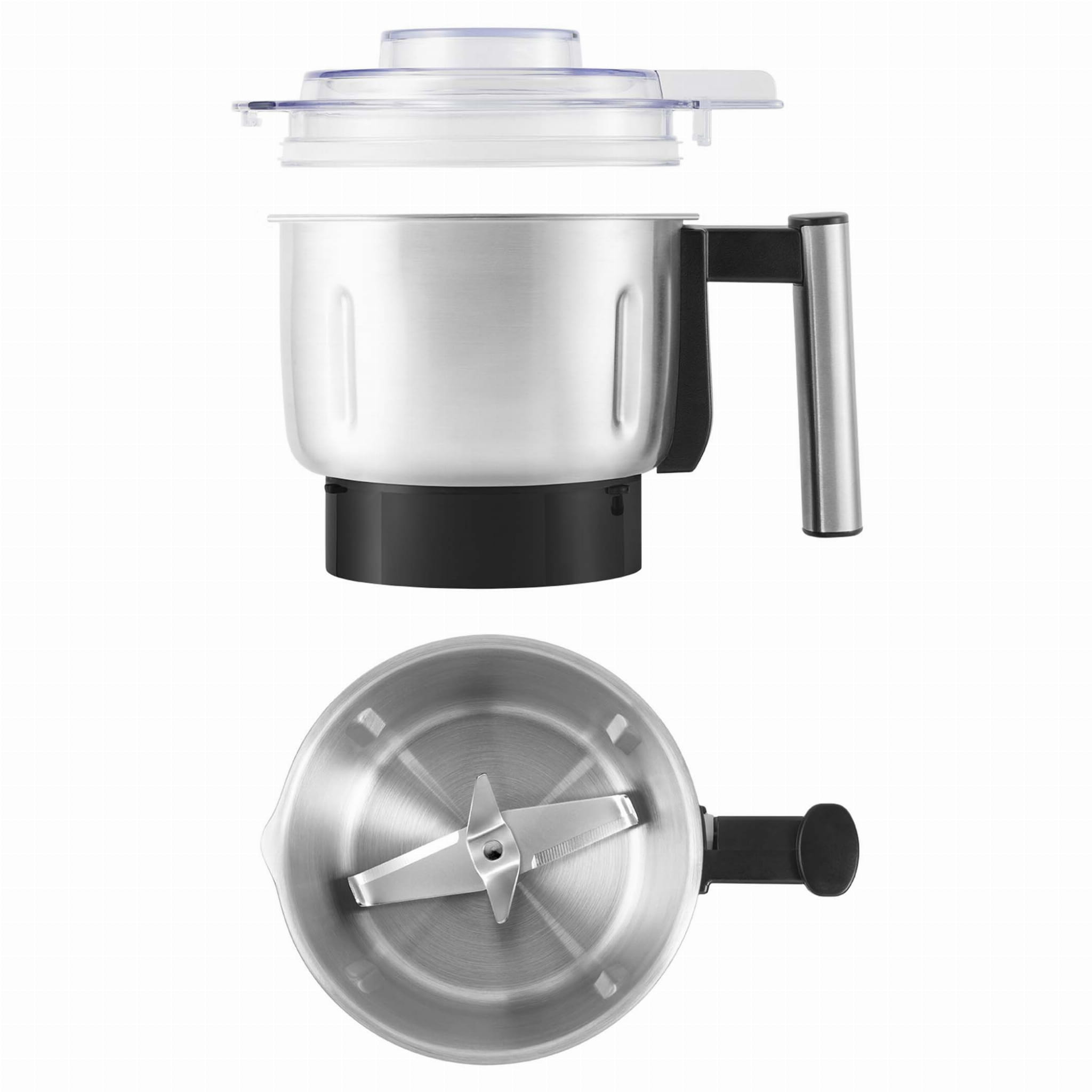 Oferuje ostre ostrza ze stali nierdzewnej o mocy 1000 W, duży szklany kielich blendera o pojemności 1,5 l oraz drugie naczynie ze stali nierdzewnej o pojemności 1,2 l do miksowania żywności dla dzieci, zup, sosów lub owoców na dżem.