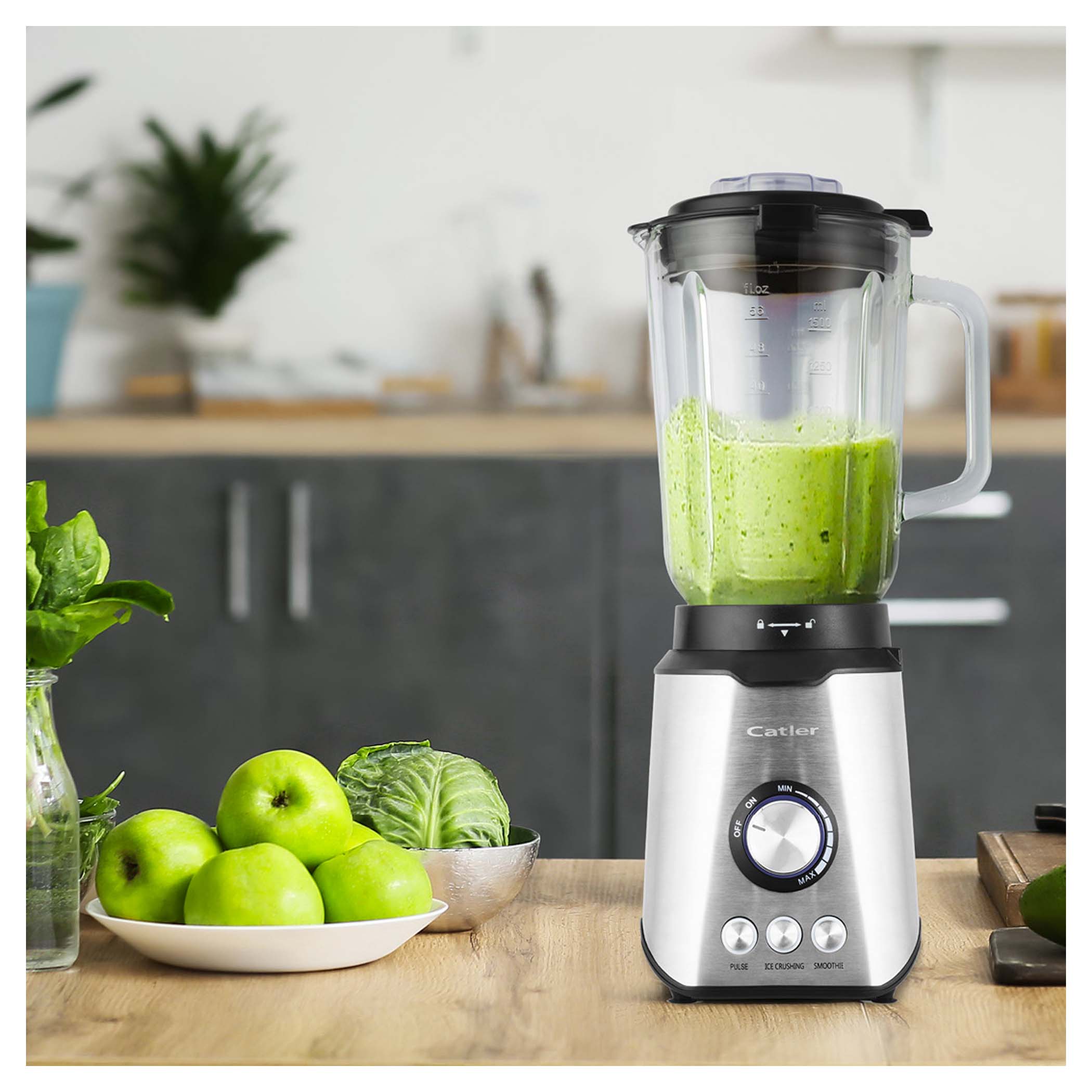 Blender stołowy to podstawowe urządzenie, które powinno znaleźć się w Twojej kuchni. Catler TB 820 z pewnością na to zasługuje, nie tylko ze względu na minimalistyczną konstrukcję ze stali nierdzewnej i szkła z niebieskim podświetleniem.