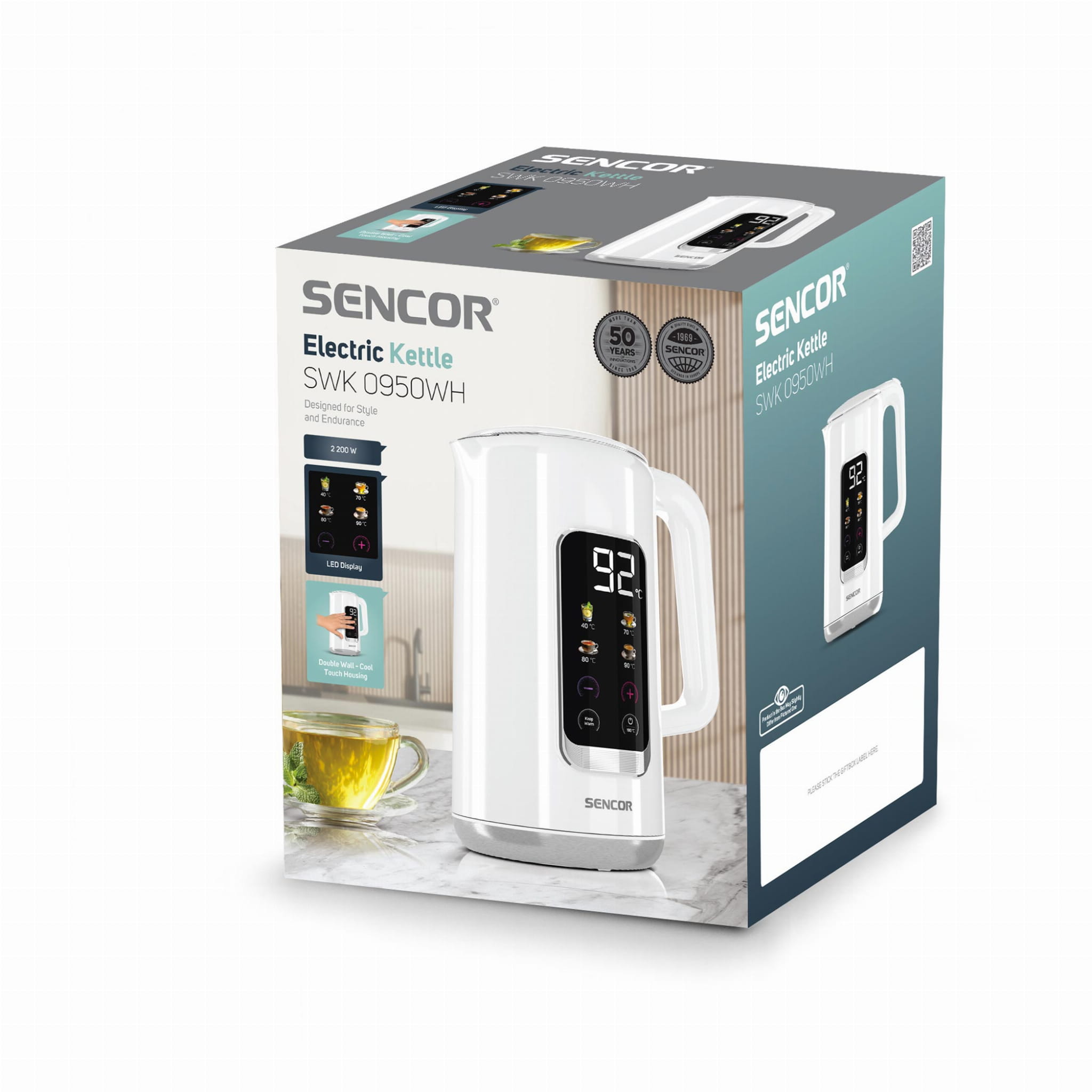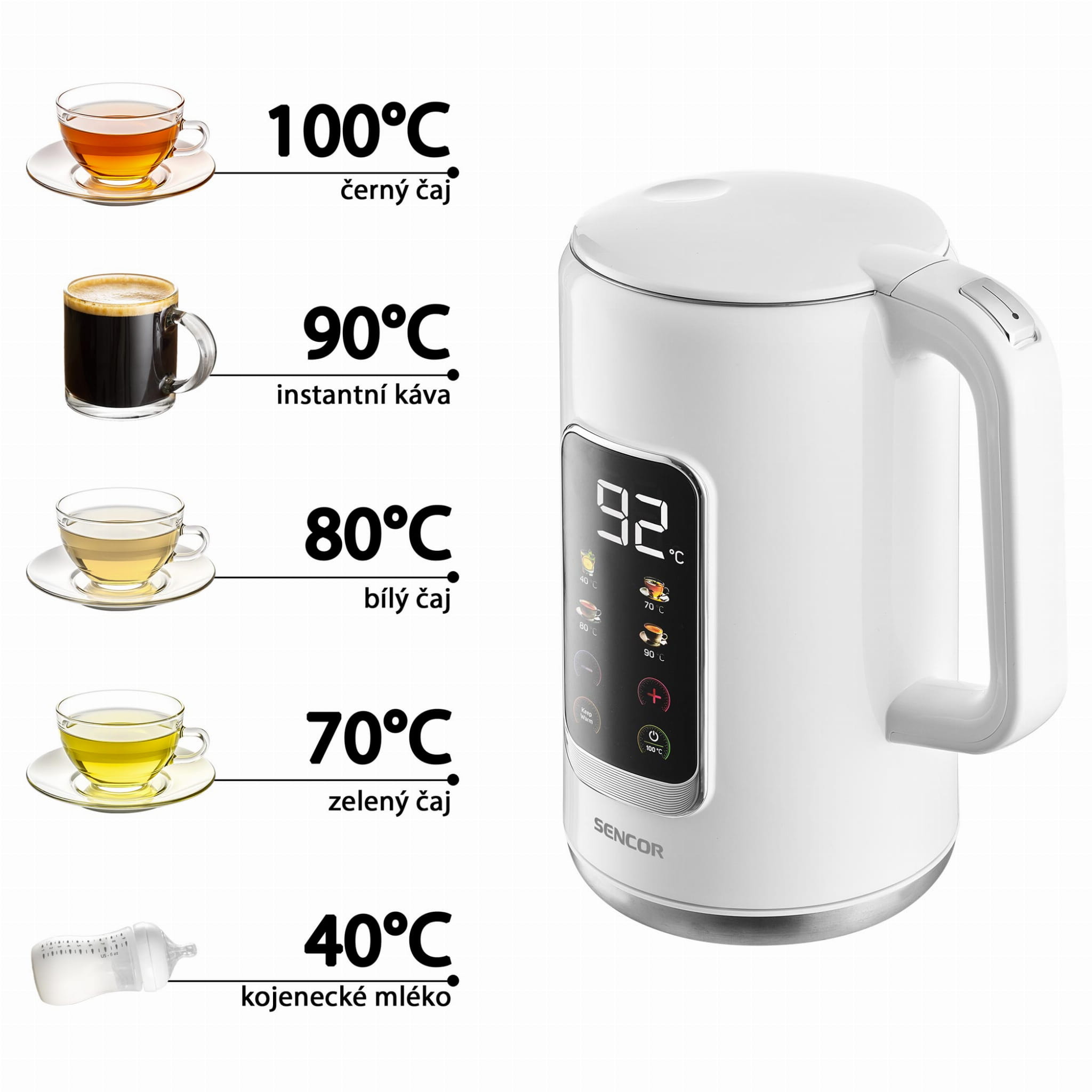 Czajnik elektryczny 1,7L z regulacją temperatury LED SWK 0950WH Sencor Outlet