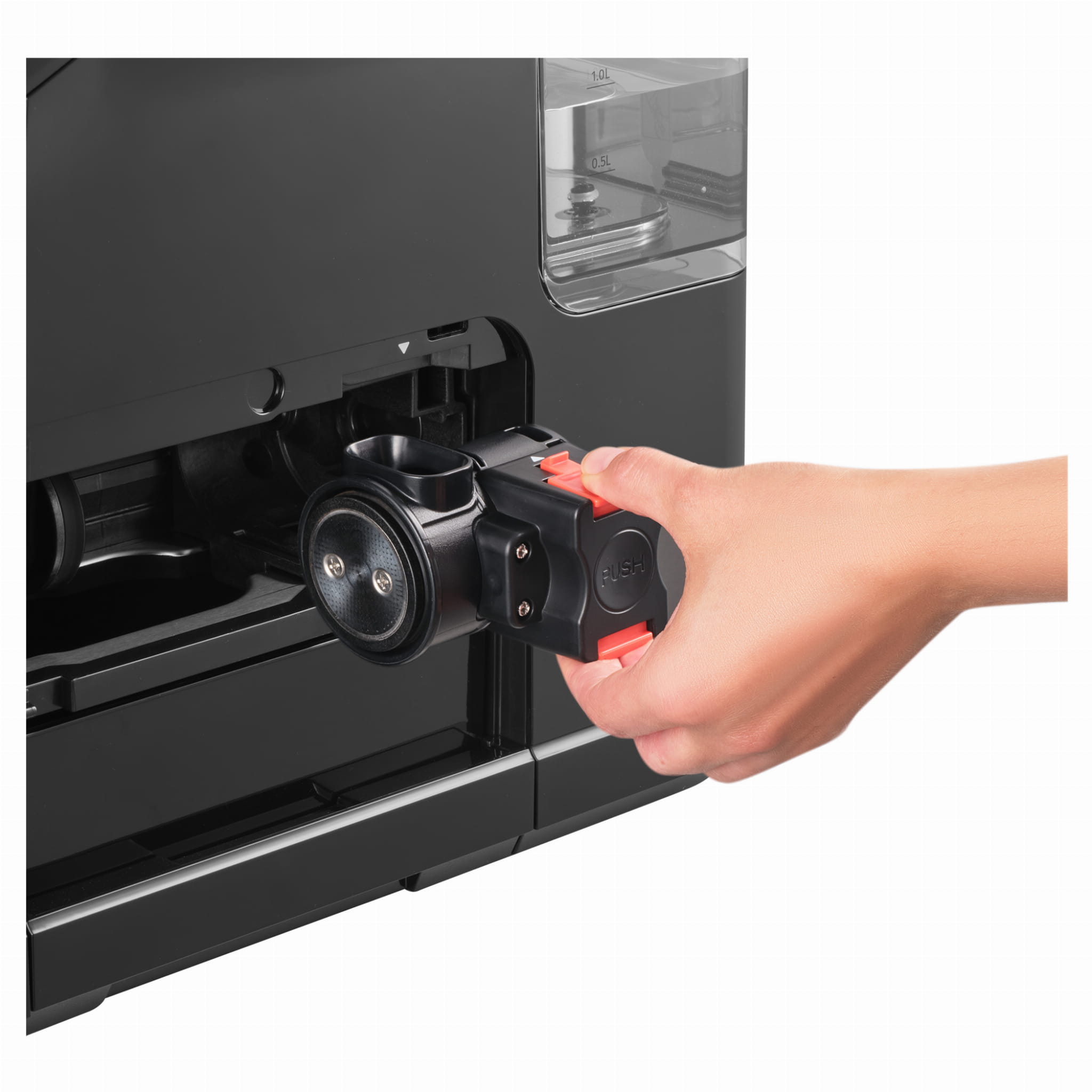 Wyjmowany zbiornik na wodę o pojemności 1,5 litra zapewnia zawsze świeży zapas wody na pyszną kawę