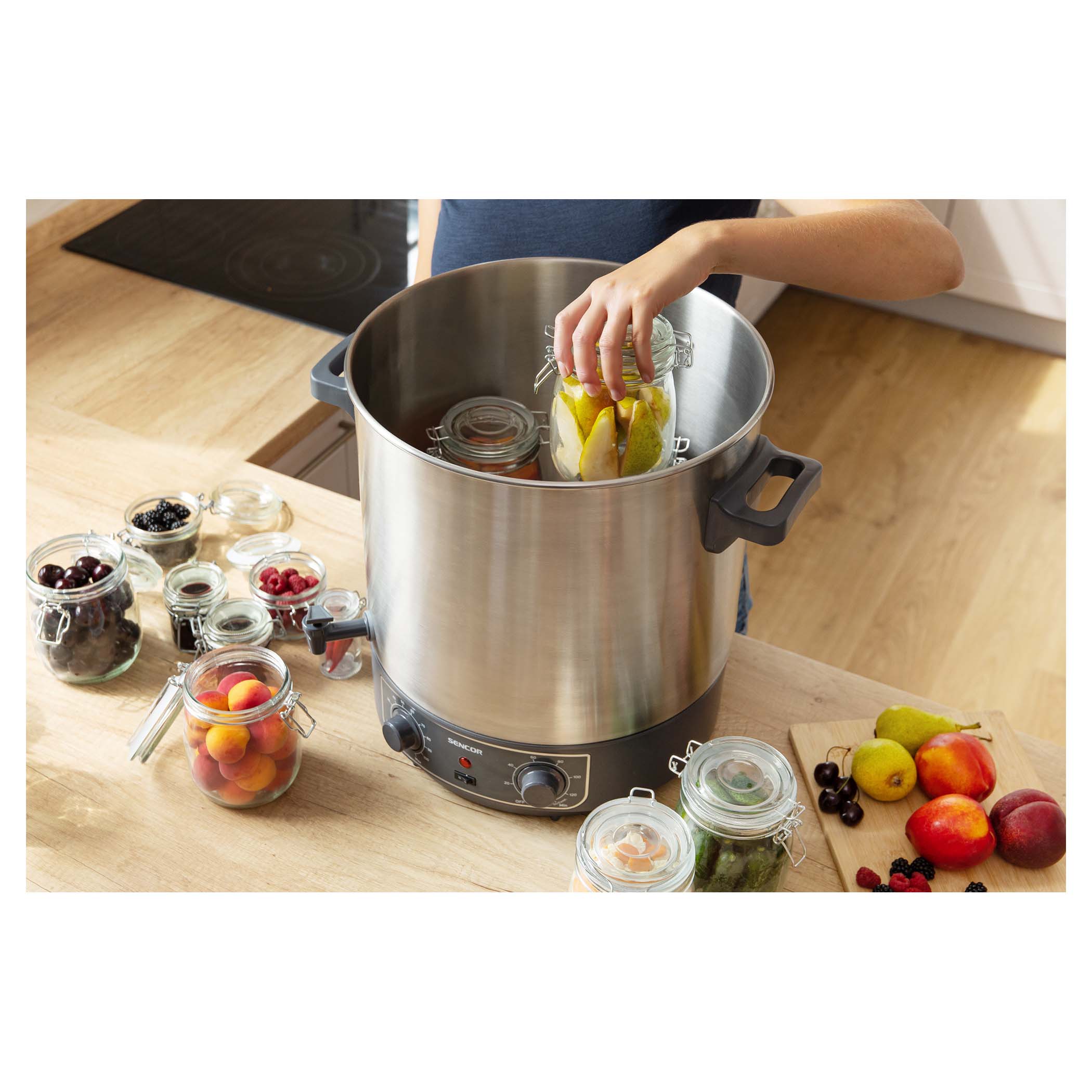 Garnek do pasteryzacji marki Sencor idealnie nadaje się do robienie w nim dżemów, a następnie pasteryzowania ich w zamkniętych słoikach. Wystarczy jedynie pokroić owoce, zasypać je cukrem, a cała resztę wykona za Ciebie to urządzenie.