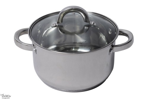 Garnek nierdzewny z pokrywką szklaną o pojemności 1,9L. Średnica 16cm. Do wszystkich rodzajów kuchenek, również indukcyjnych.