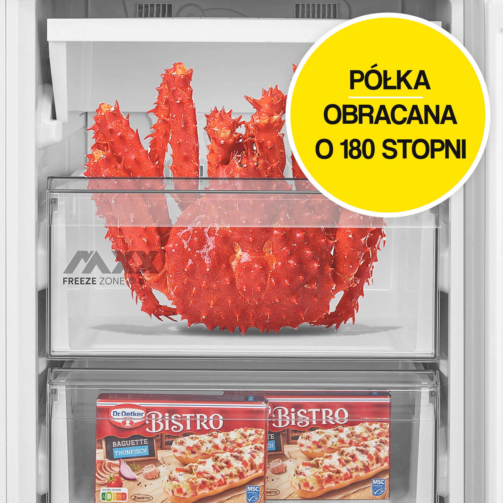 - Funkcje: Zmiana kierunku otwierania drzwi, Szybkie zamrażanie, Komora zero