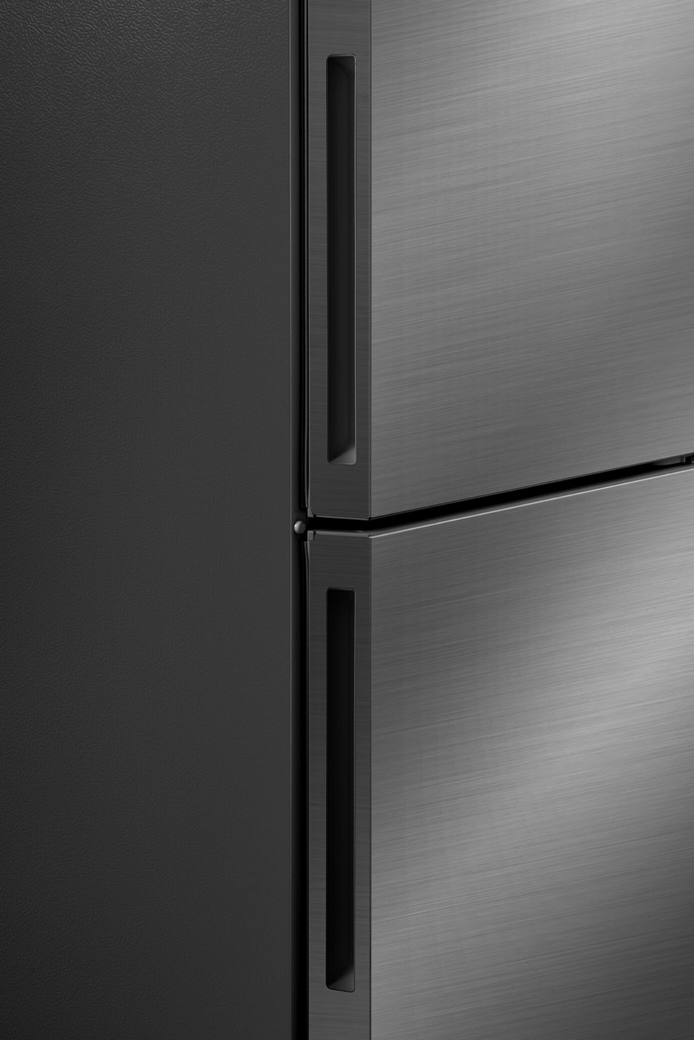 Lodówka wyposażona jest w pełny system No Frost, który zapobiega powstawaniu szronu i lodu zarówno w chłodziarce, jak i zamrażarce. Dzięki temu nie wymaga ręcznego rozmrażania, a przechowywane produkty dłużej zachowują świeżość.