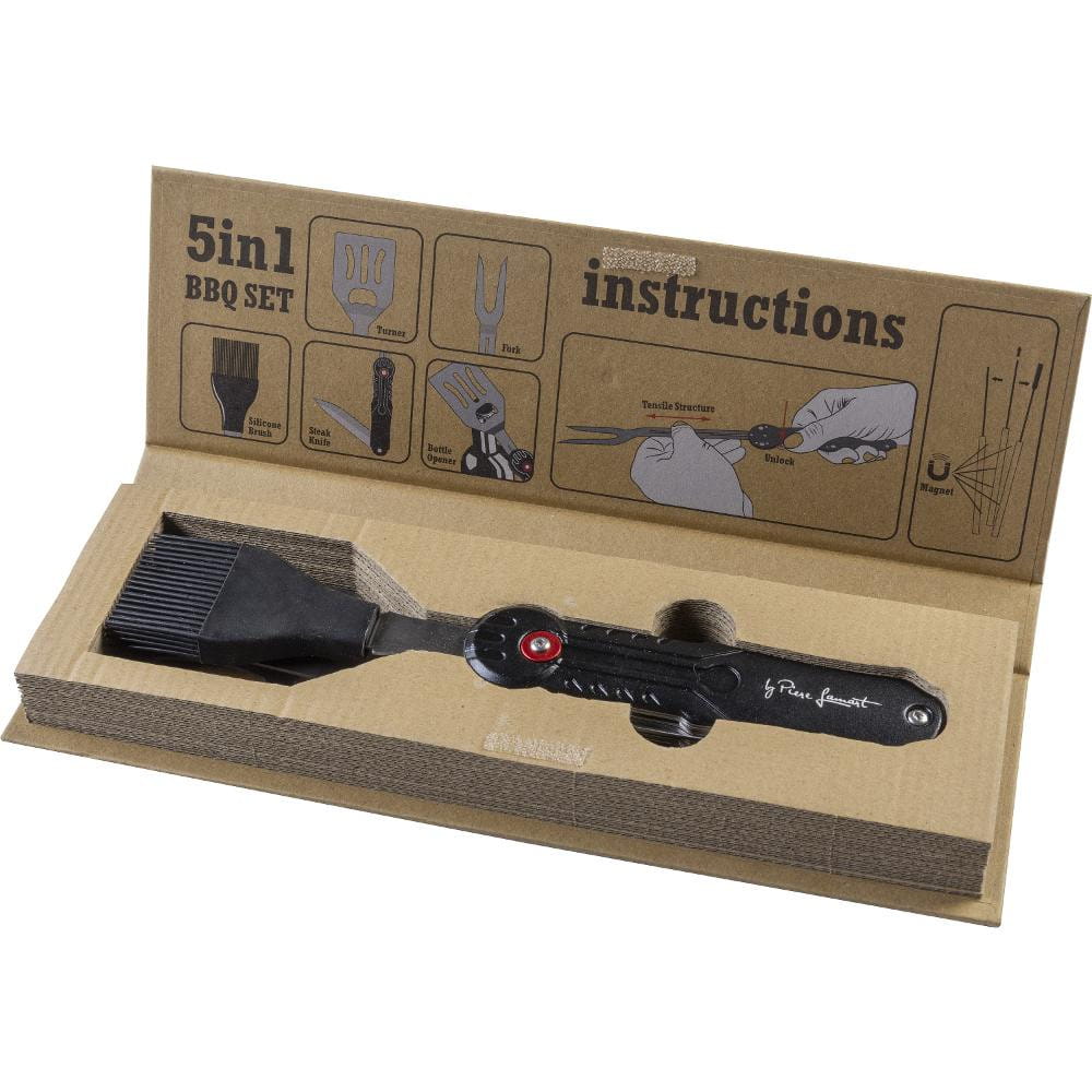 To narzędzie do grillowania jest wielofunkcyjne i zawiera pięć najważniejszych narzędzi do doskonałego grillowania.