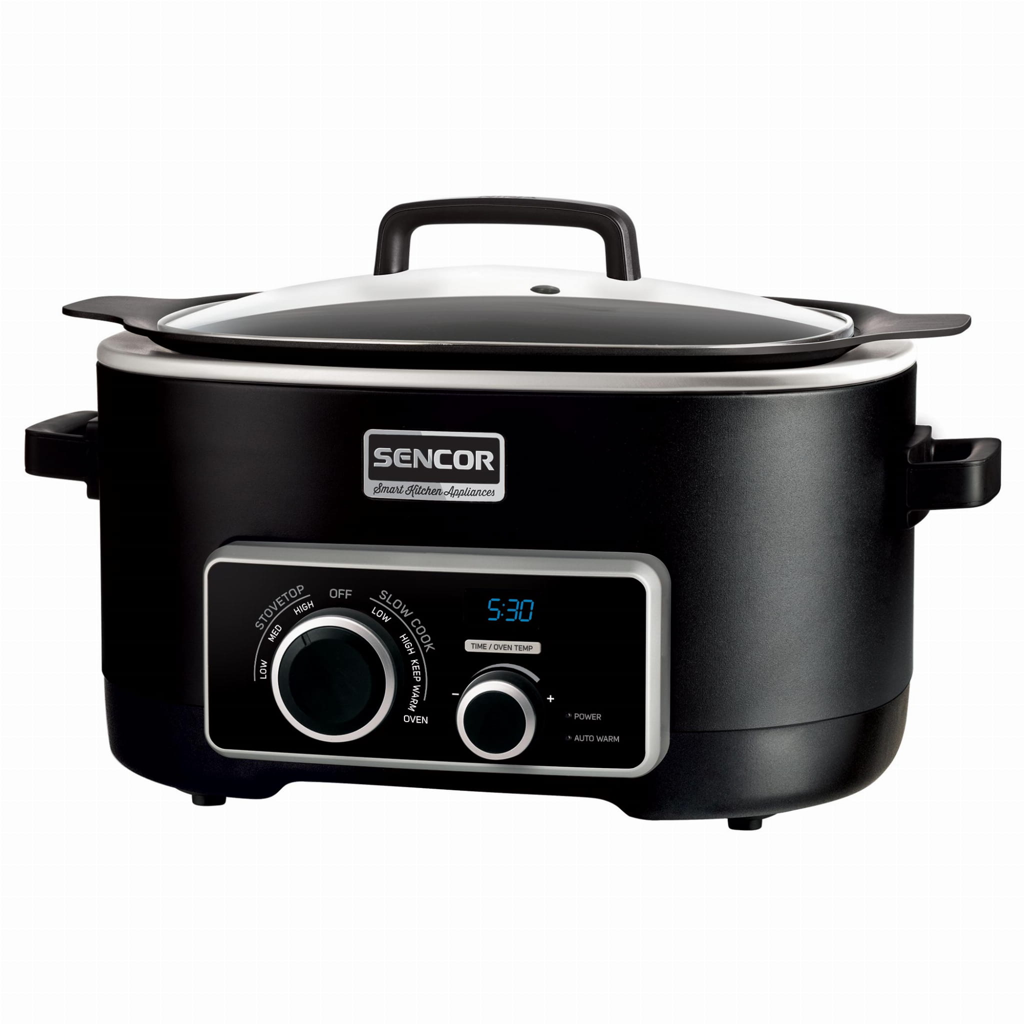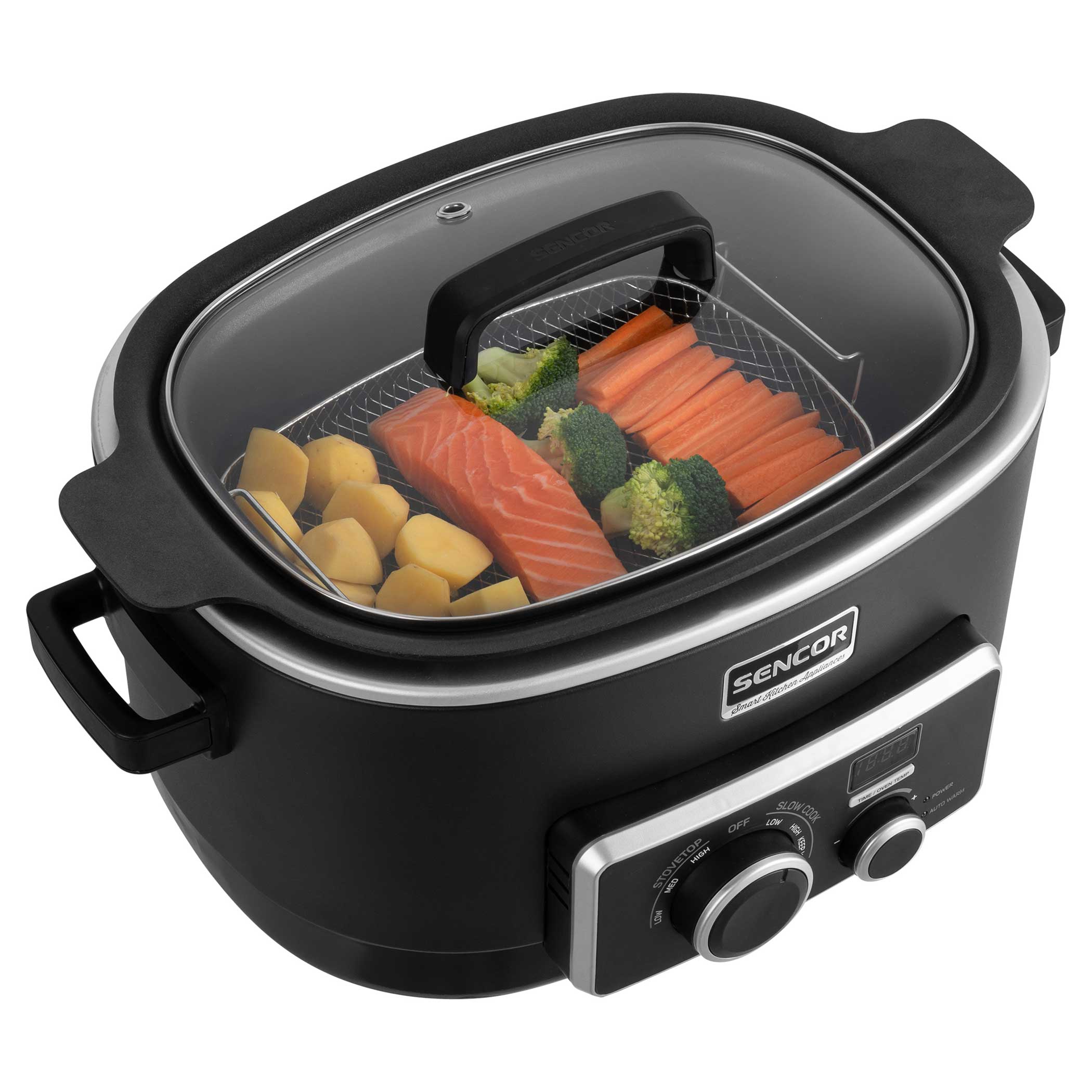 Wolnowar oferuje 3 tryby gotowania klasycznego oraz 2 tryby gotowania powolnego. Dzięki powolnemu gotowaniu, rosół może się gotować nawet 12 godzin, pyszny sos 8 godzin, a to tylko przykłady. Wolnowar ten jest niezawodnym urządzeniem do prawie wszystkich obróbek cieplnych, a jako bonus Sencor dodał jeszcze funkcję Keep Warm, dzięki której wolnowar utrzymuje ciepło potraw do 12 godzin.
