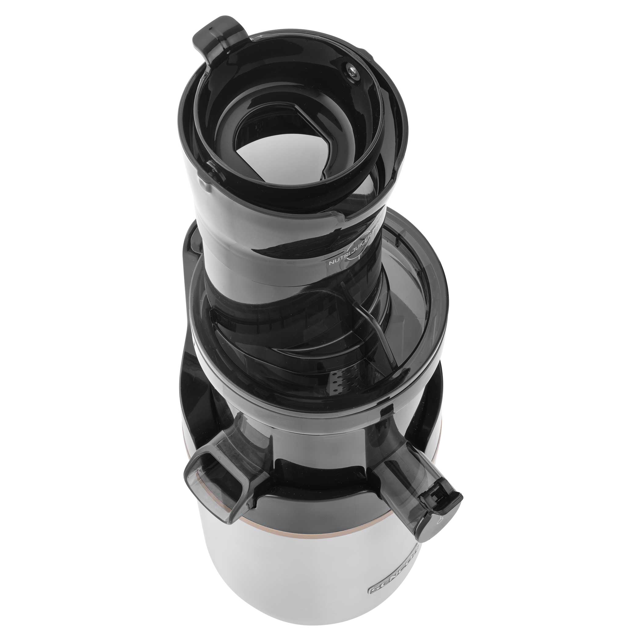 Nie zawiera BPA, ślimak z PMMA oraz misa do wyciskania soków i podajnik z PCTG,